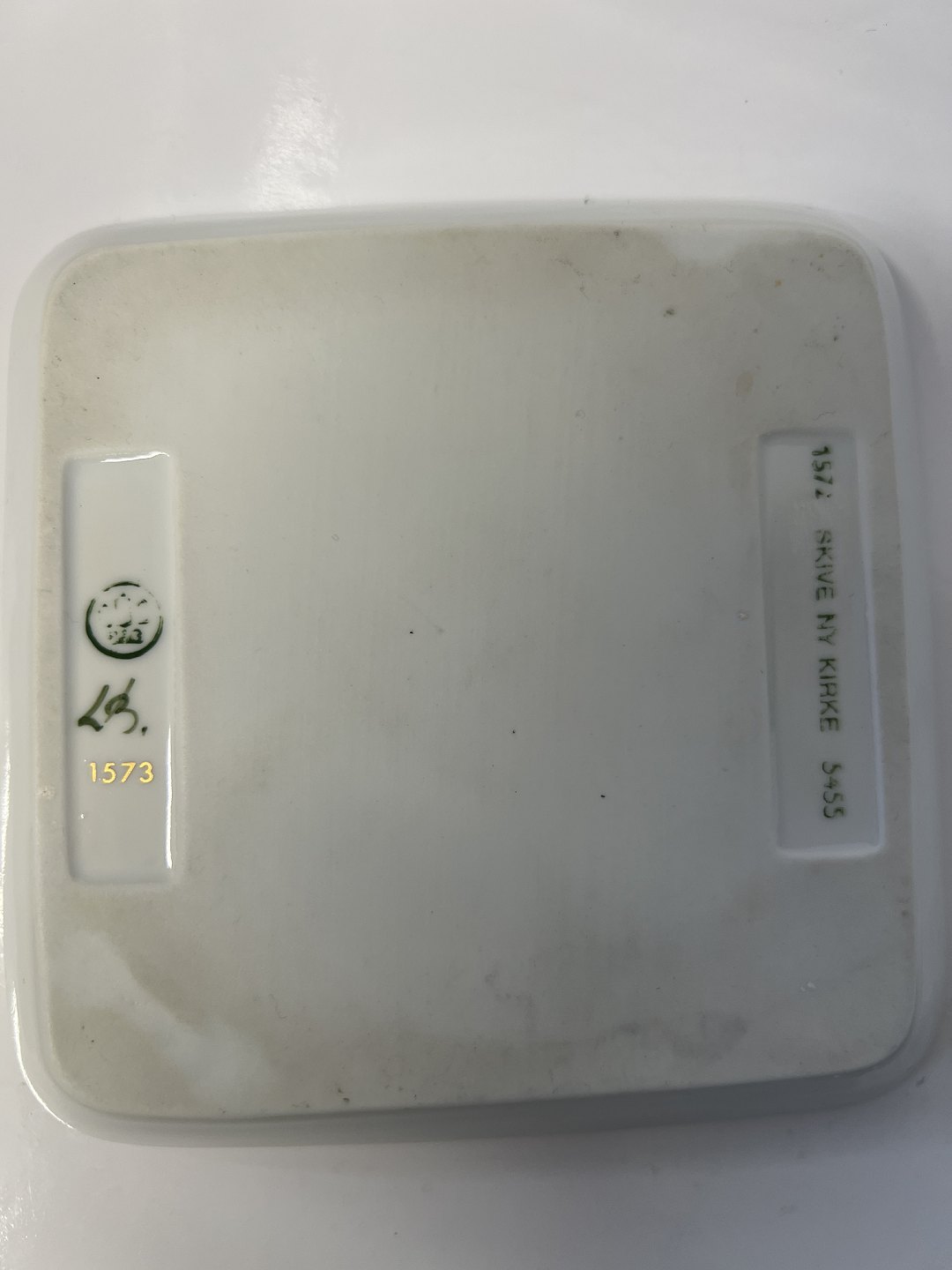 Bing & Grøndahl Firkantet asiet (oprindeligt askebæger) Skive ny kirke.