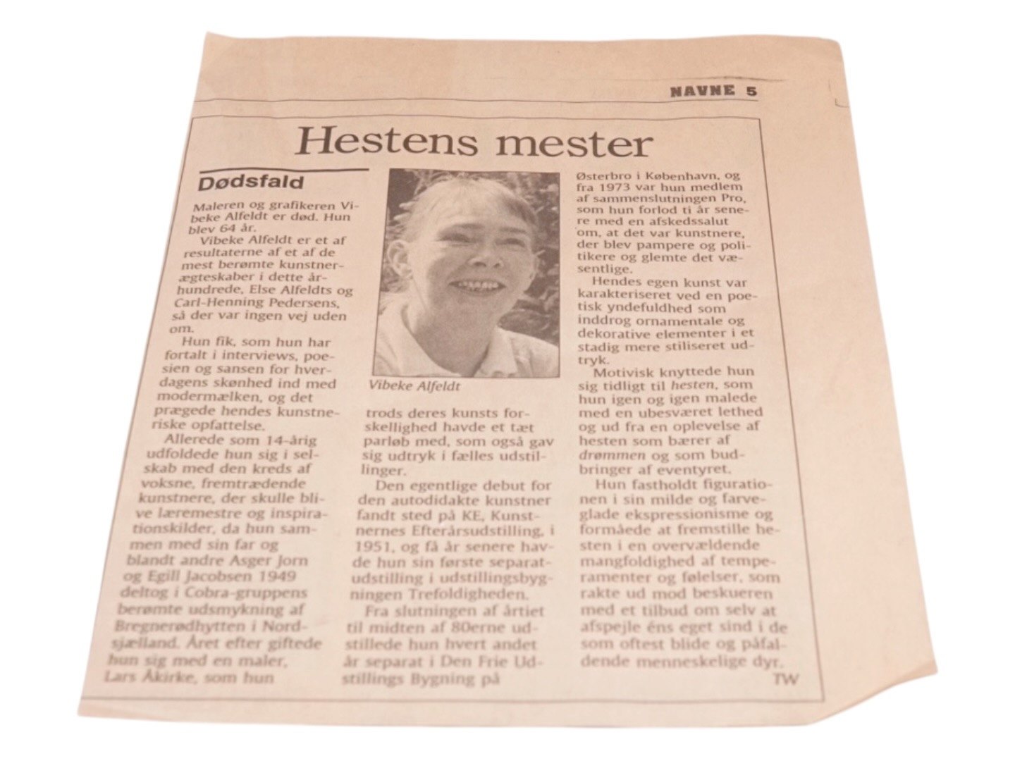 Avisudklip med nekrolog medfølger.