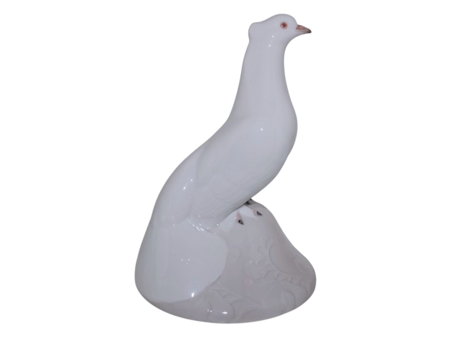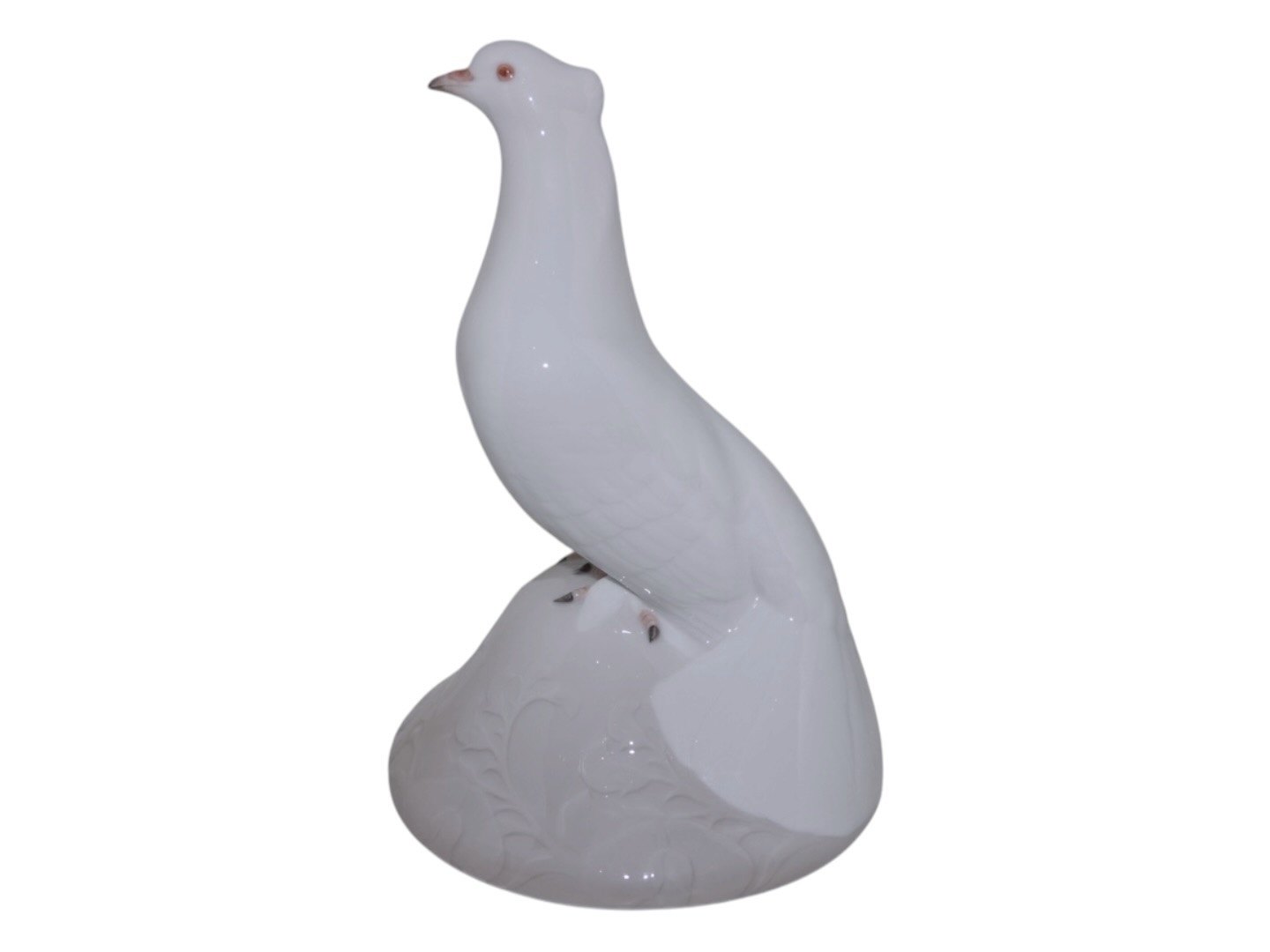 Sjælden og større Royal Copenhagen figur, hvid påfugl. Der har oprindeligt været en lille flad underskål til denne.