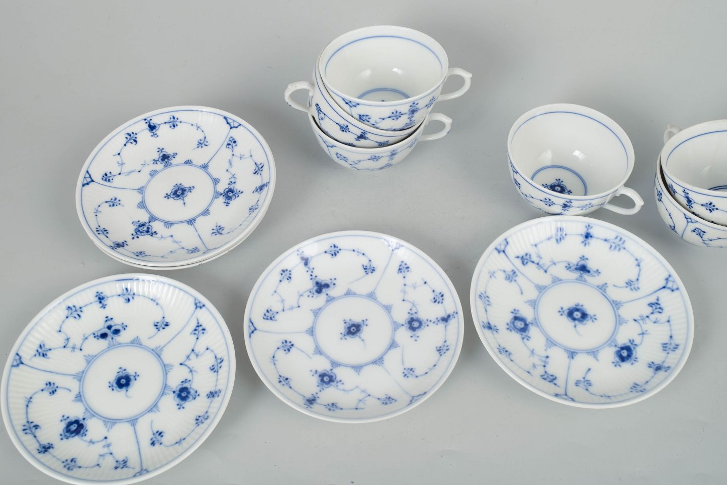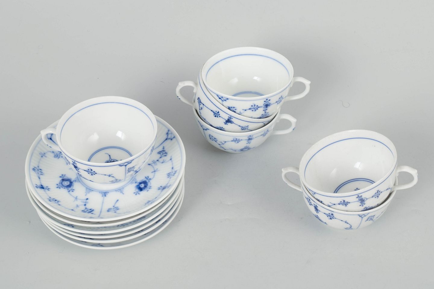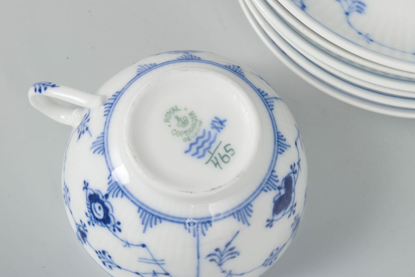 Royal Copenhagen Musselmalet Riflet, sæt af seks kaffekopper med underkopper.