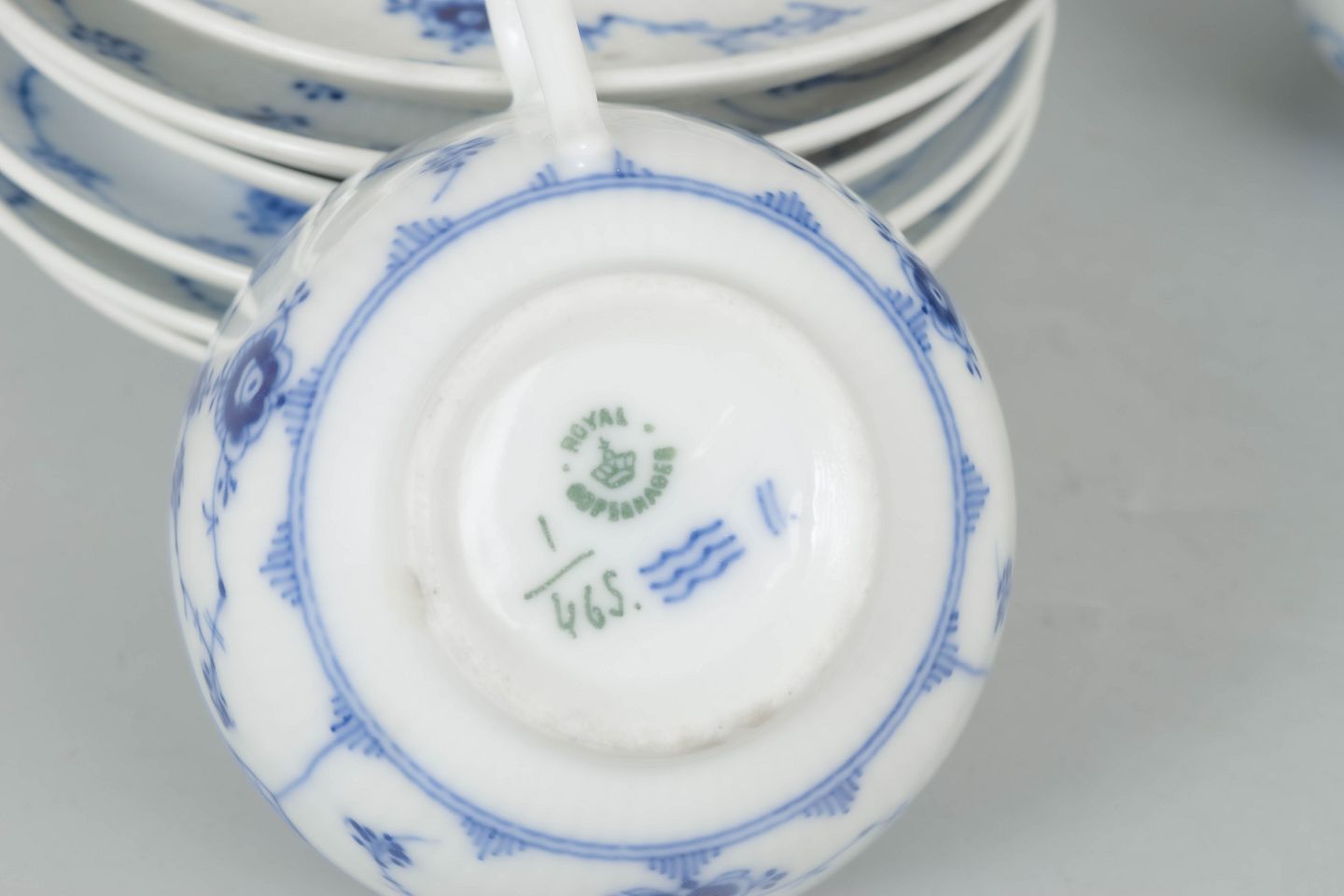 Royal Copenhagen Musselmalet Riflet, sæt af seks kaffekopper med underkopper.