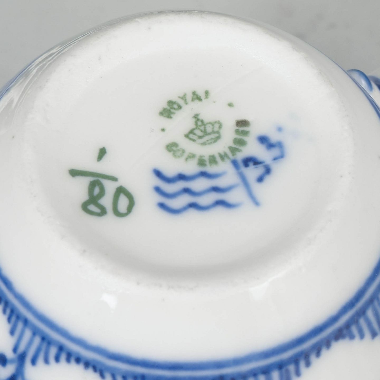 Royal Copenhagen Musselmalet Riflet, sæt af seks kaffekopper med underkopper.