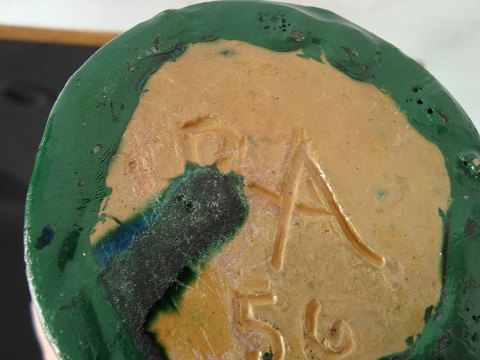 Keramikkande i form af ørn dekoreret med fugle i hjertekartouche.