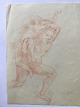 Tegning af Robert Büchtger - Nøgen ung mand med stav.