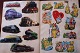 Fransk smykkekunstner. Fem designerringe i plast og metal. Stribet design ...