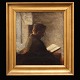 E. Klenø 1921-2005. "Interiør med kvinde" Olie maleri på lærred.
