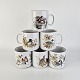 4 tekopper med underkopper, sukkerskål og flødekande, ...