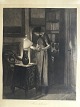 Radering af Erling Eckersberg - Køkkeninteriør med et ungt par.