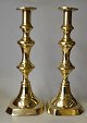 Par engelske messingstager 28cm på 8-kantet fod fra 19. Årh.
