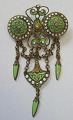 Italiensk brosche i messing med grønt og hvid emalje, o. 1900.