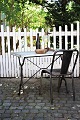 Gamle fransk altan / havestol i sortmalet jern med trælameller. . .