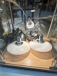 Gammel butiks spot med glas skærm i fattigmandssølv ,