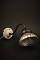 Fin , gammel væglampe i metal med porcelæns holder og fin lille skærm i ...