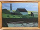 Jack Kampmann 1914--1989. "Motiv fra Færøerne" Olie maleri på lærred i lys ...