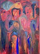 Bente Merrild 1951. "Moskva" Stort flot ekspressivt oliemaleri i kraftig ...