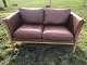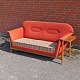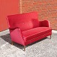 To personers sofa af valnød med intarsia og polstret med rød velour fra ...
