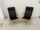 Fin Østergaard stole i sort hanskeblød læder og med stel i sæbebehandlet ...