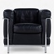 LC 2 - Lænestol i originalt sort læder med stel i ...