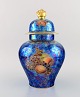 Stor Rosenthal lågkrukke i blå glaseret porcelæn med håndmalede frugter, ...