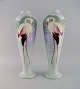 Et par store store fajancevaser med håndmalede flamingoer og søpavillion. ...