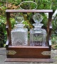 Tantalus af egetræ med to forskellige karafler af krystal med propper. ...