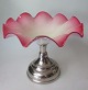 Rubin rød glas skål med tin montering, ca. 1920, Danmark.