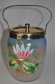 Bisquit dåse i opalhvidt glas med påbrændt dekoration i . . .