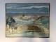 Oliemaleri af hus i bakker, af Knud Bøstrup