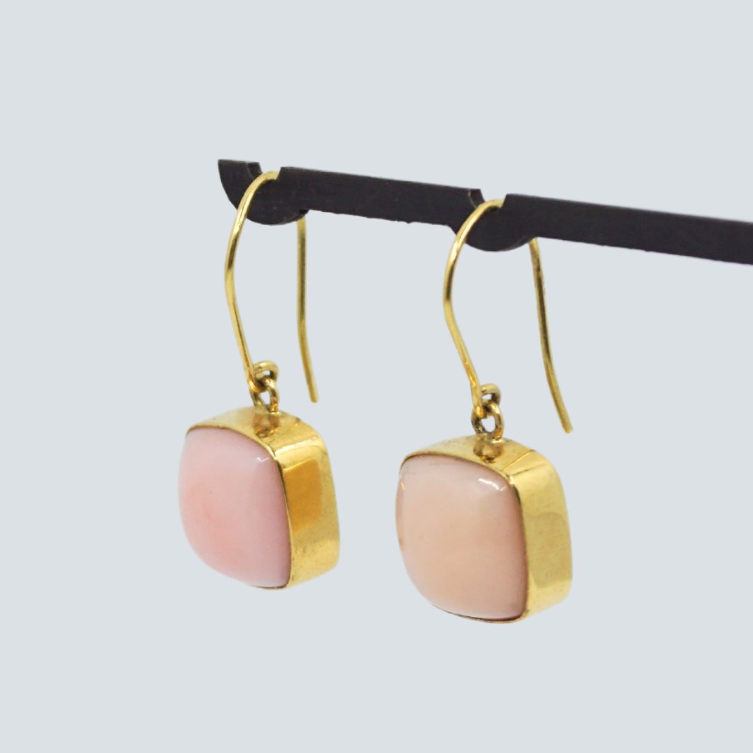 Pair of earrings in 18k gold set with coral