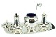 Cohr; Salt- og peberbøsse samt sennepskrukke i sterlingsølv på bakke