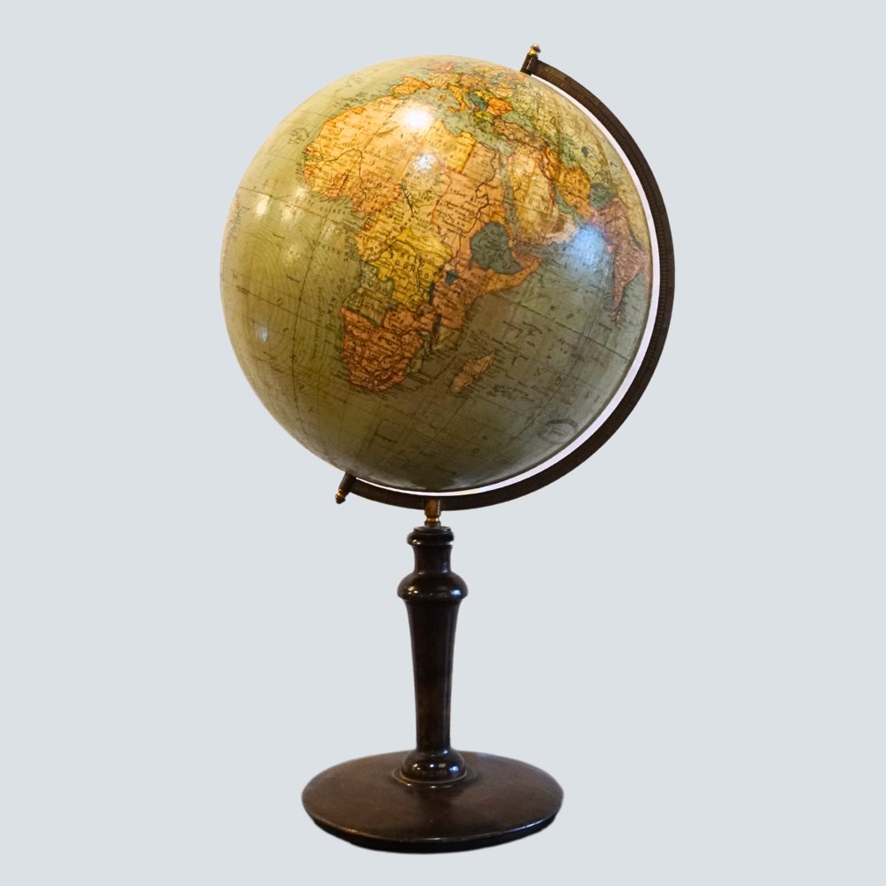 Globus fra første halvdel af 1900-tallet. H. 61 cm. Udført med træfod. Kontakt os gerne, hvis du søger noget specifikt. Hvad du ser på vores hjemmeside, er blot et udvalg af det, som vi har.