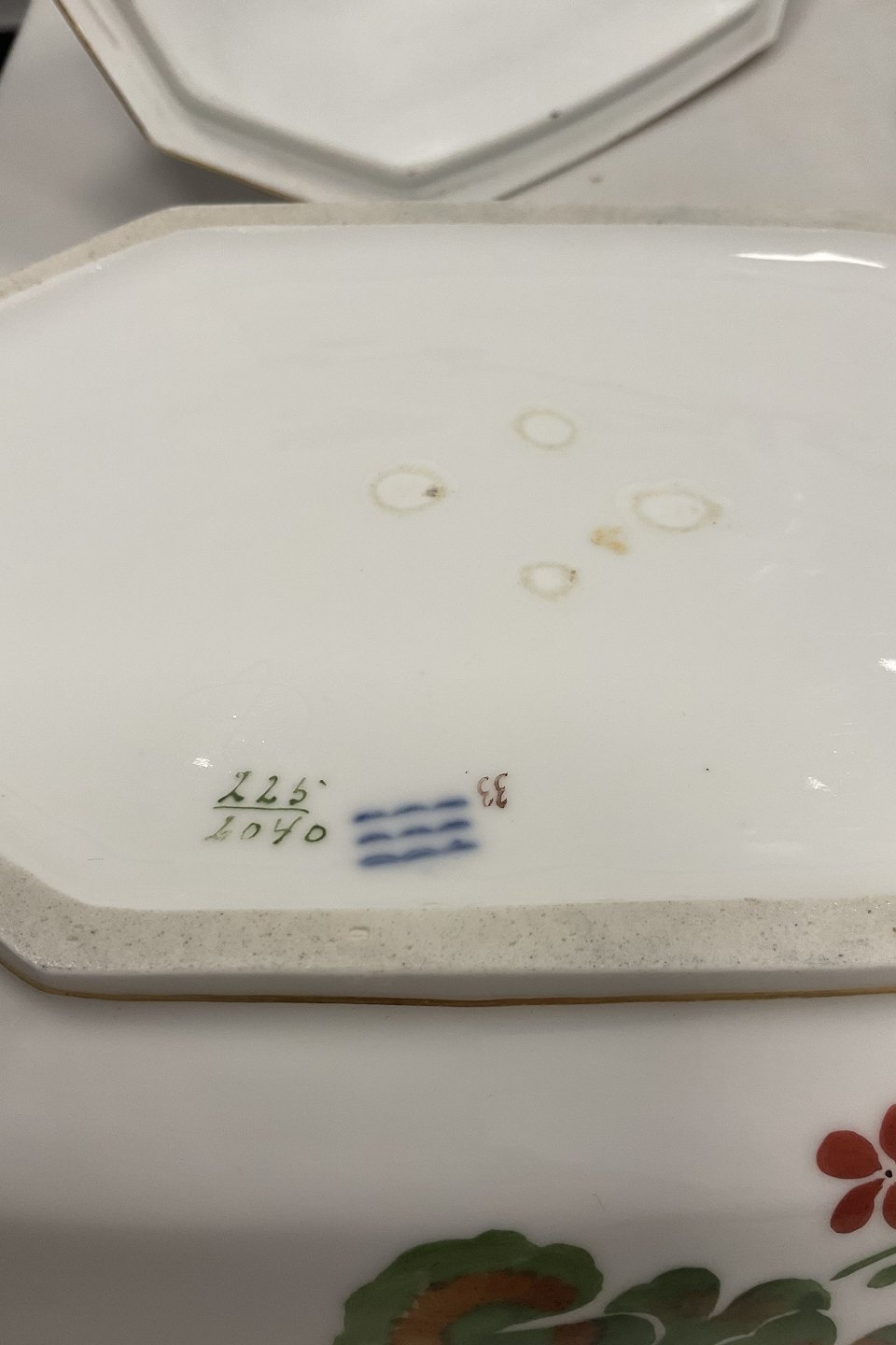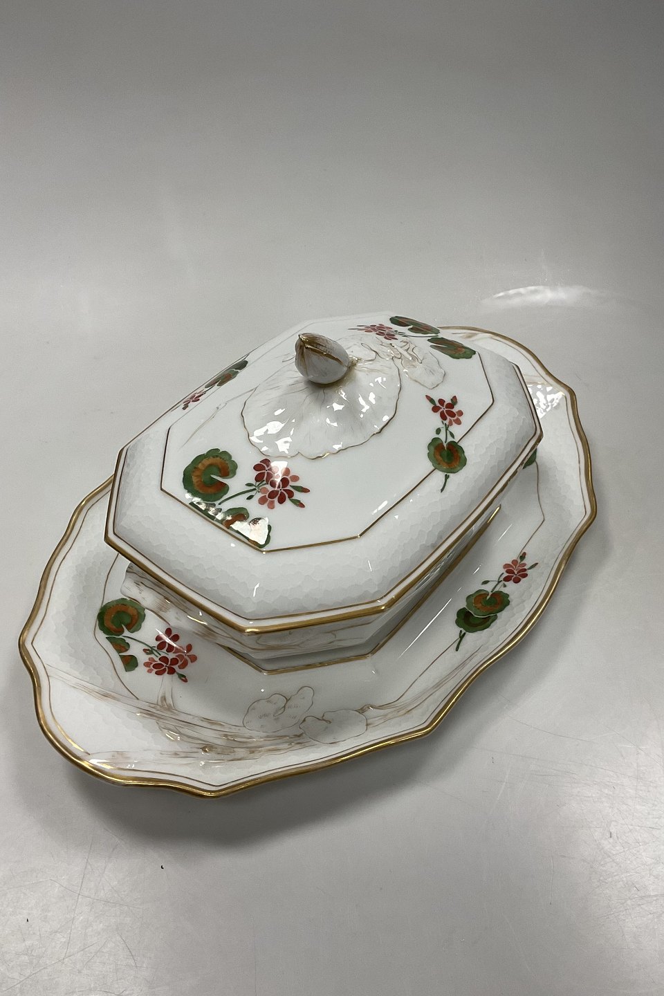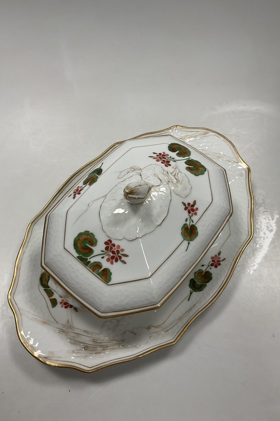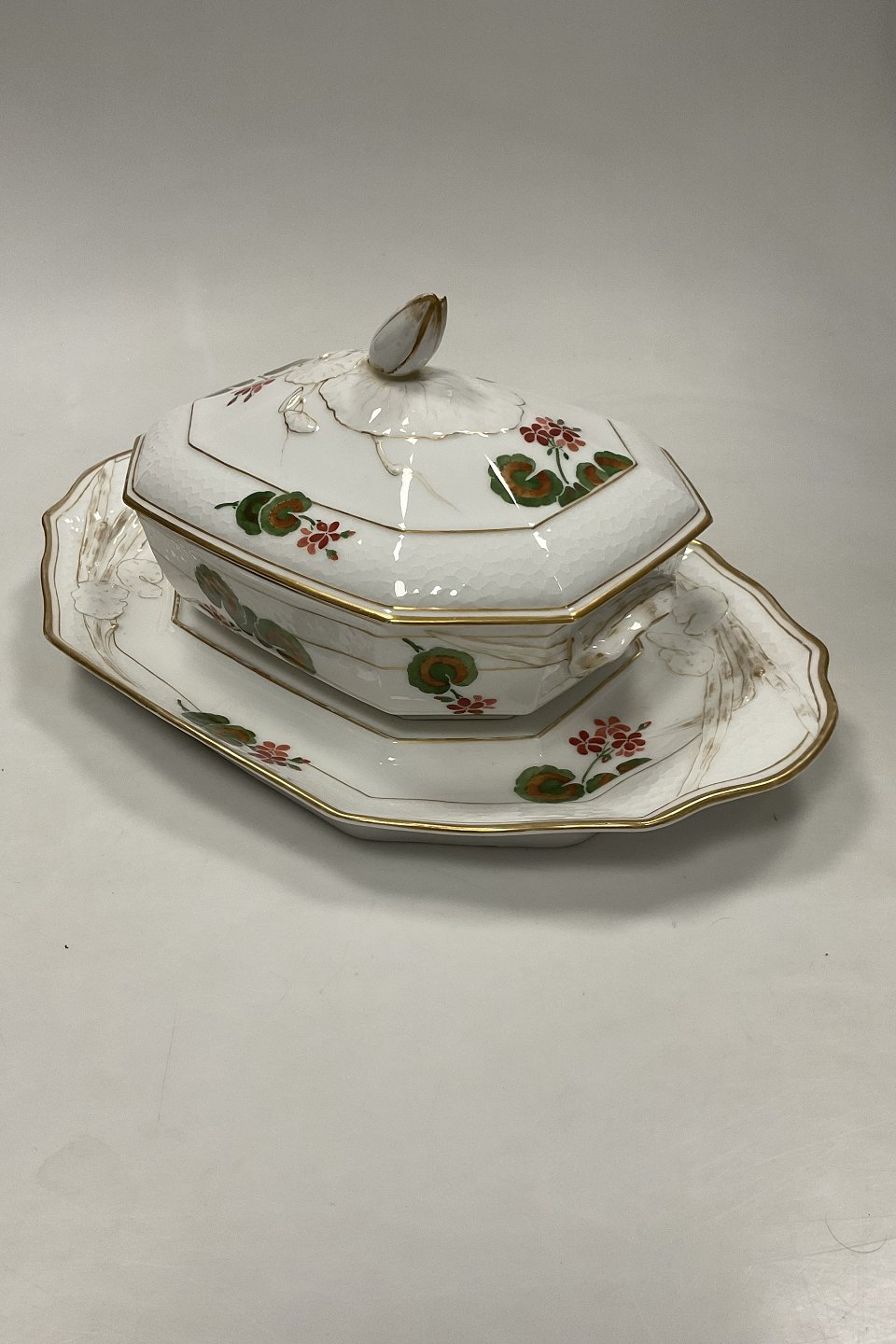 Royal Copenhagen Art Nouveau Stel No. 225 Pelargonie Terrin med fad No. 2038 / 2040