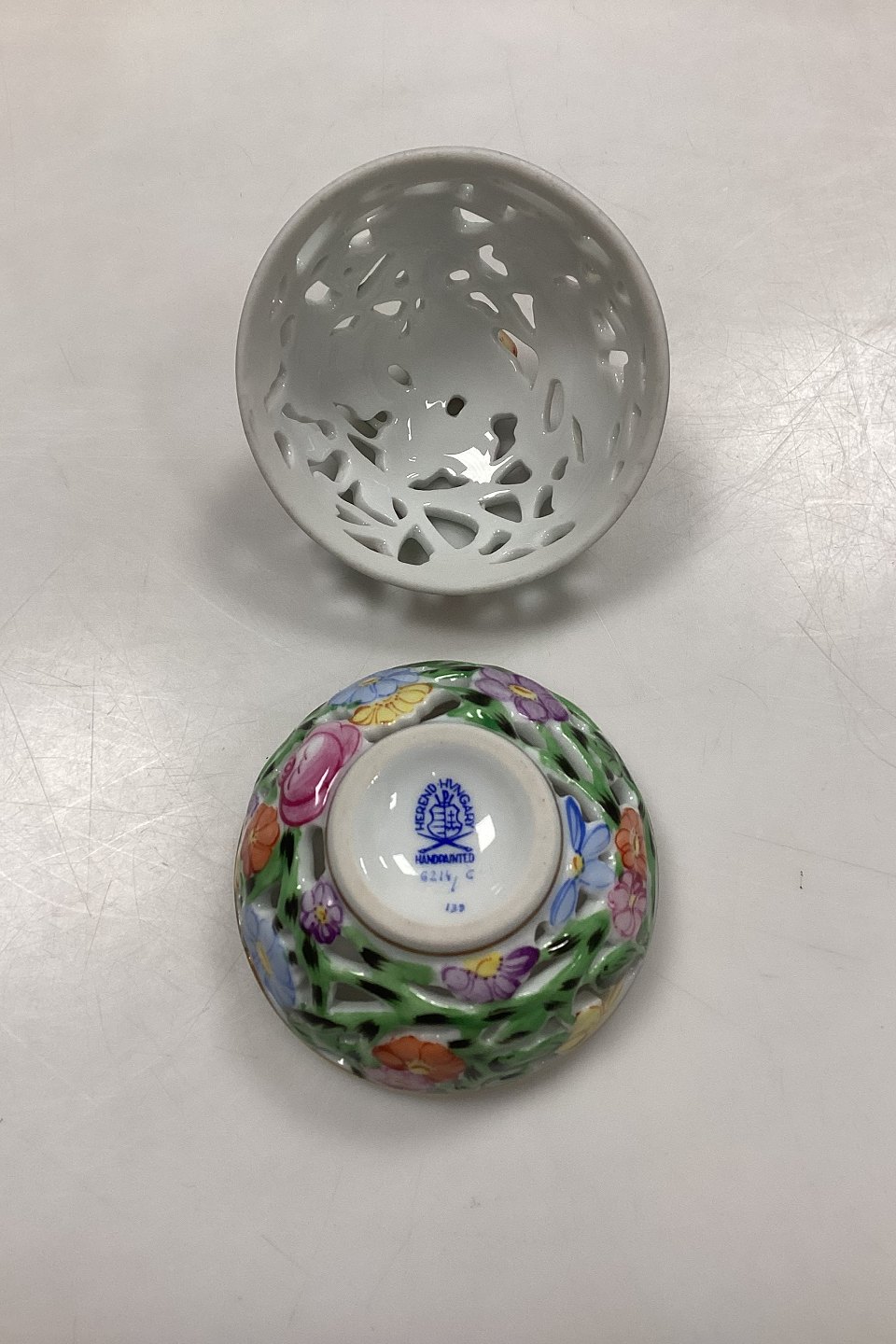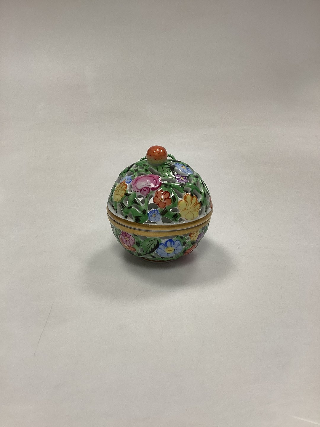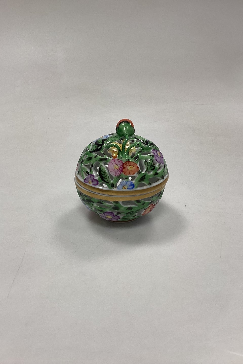 Herend Ungarn Bonbonniere, gennembrudt No. 6214. Multifarvet med blomster.