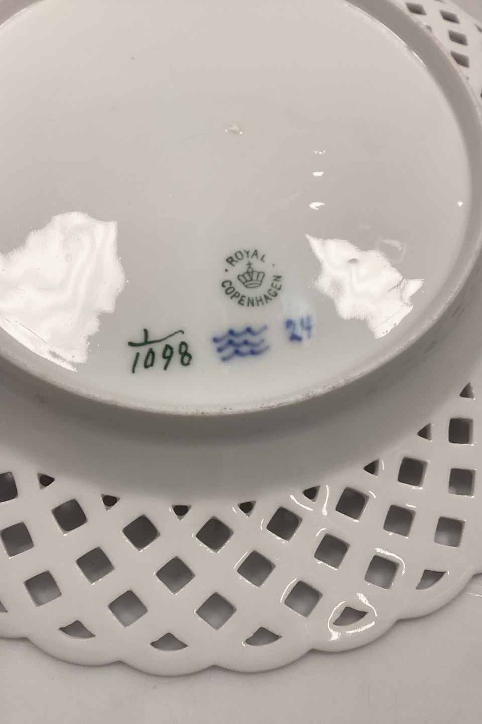 Royal Copenhagen Musselmalet Helblonde med gennembrudt kant Flad Tallerken No. 1/1098