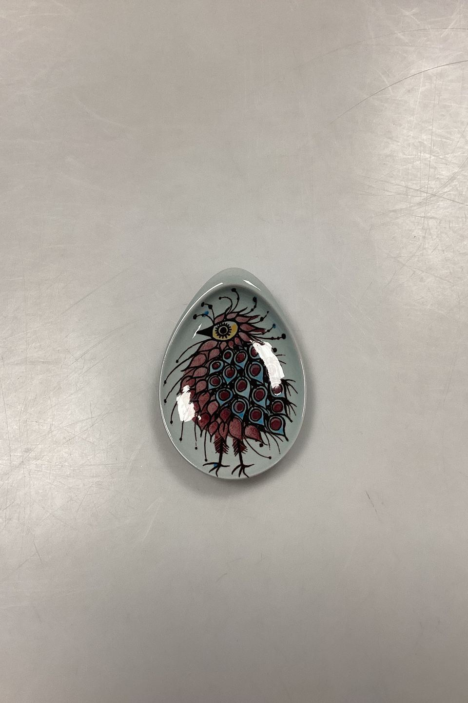 Aluminia Fajance Tenera Kuvertskål No. 110/1355. Motiv: Fugl i rosa og blå. Designet af Beth Breyen.