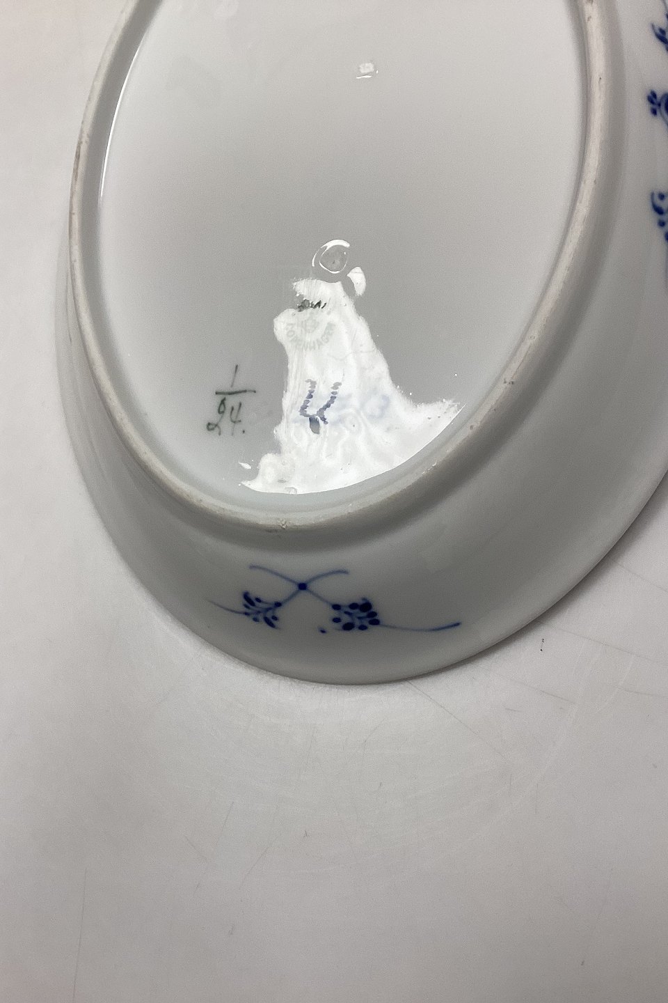 Royal Copenhagen Musselmalet Riflet Salat- eller Kagefad No. 24.