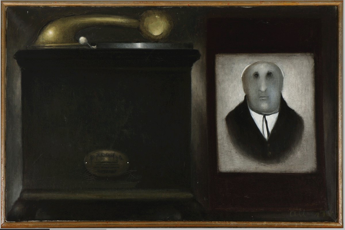 "Grammofonen og portrættet" Olie maleri på lærred.