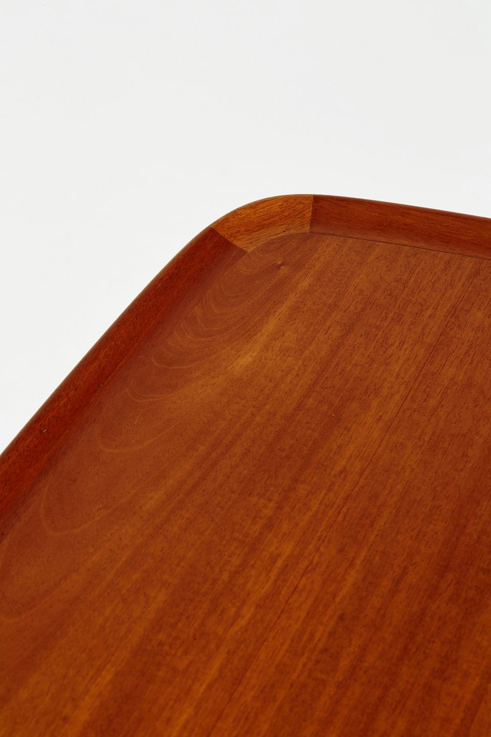 Itemnumber: 524578Mahogany coffee table with Kehlet edge. Shoes of patinated brass. Magazine shelf with three massive crossbars, the two outermost of which are slightly curved. Cabinetmaker work from the 1930ties. H. 56 cm. W. 105 cm. D. 52 cm.