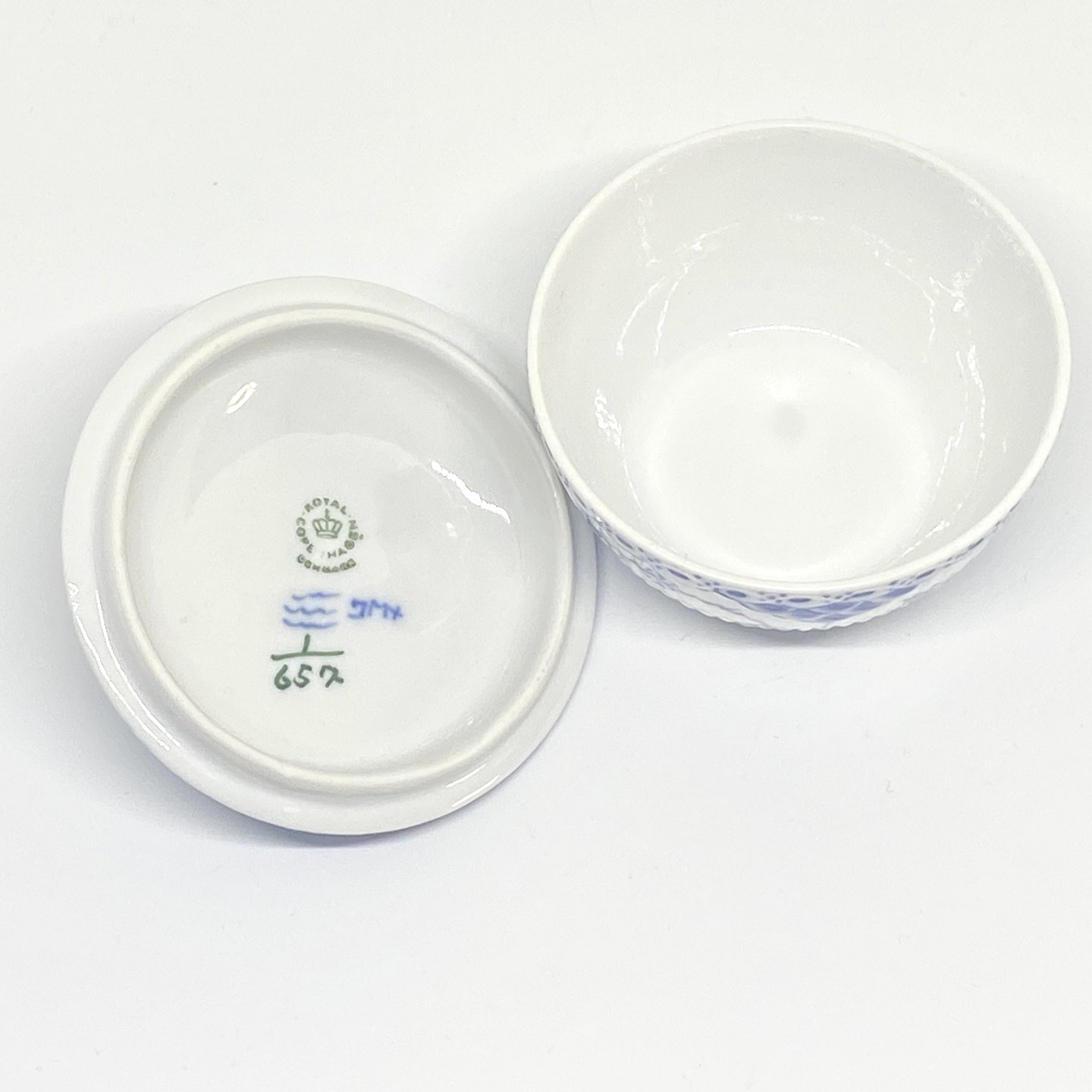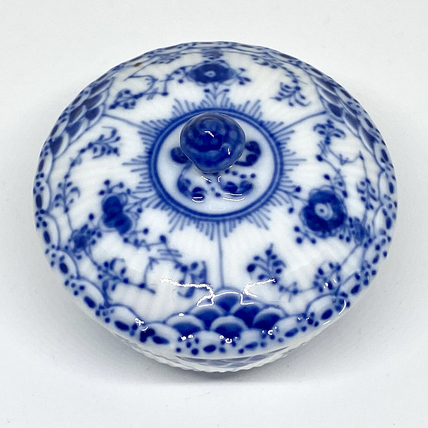 Musselmalet halvblonde. Lille sukkerskål med låg.