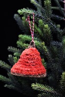 Gammel juletræspynt i form af julesvamp (rød fluesvamp) lavet i presset vat. . .