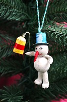 Gammelt juletræspynt , fin dame der holder en lille julemand ,