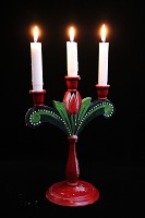 Gammel svensk træ julelysestage med fin bemaling og med plads til 3 almindelige stearinlys. . .