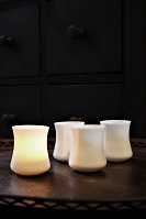 Old mouth-blown candle glass in white opal glass for tealights. . ,