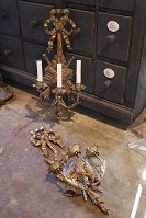 A pair of antique candlesticks in Fil de Fer (metal work)