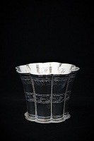 Gammel glas-bakke i sølv , stemplet. Dia. :8cm. . .