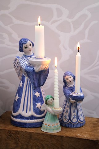 White glazed ceramic figure from Kähler of woman with apple. Height: 28cm.