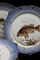 (12 different), blue-painted fish edge and gold edges.Dia.:24,5cm. Decoration number: 19/3002. 1.sort.