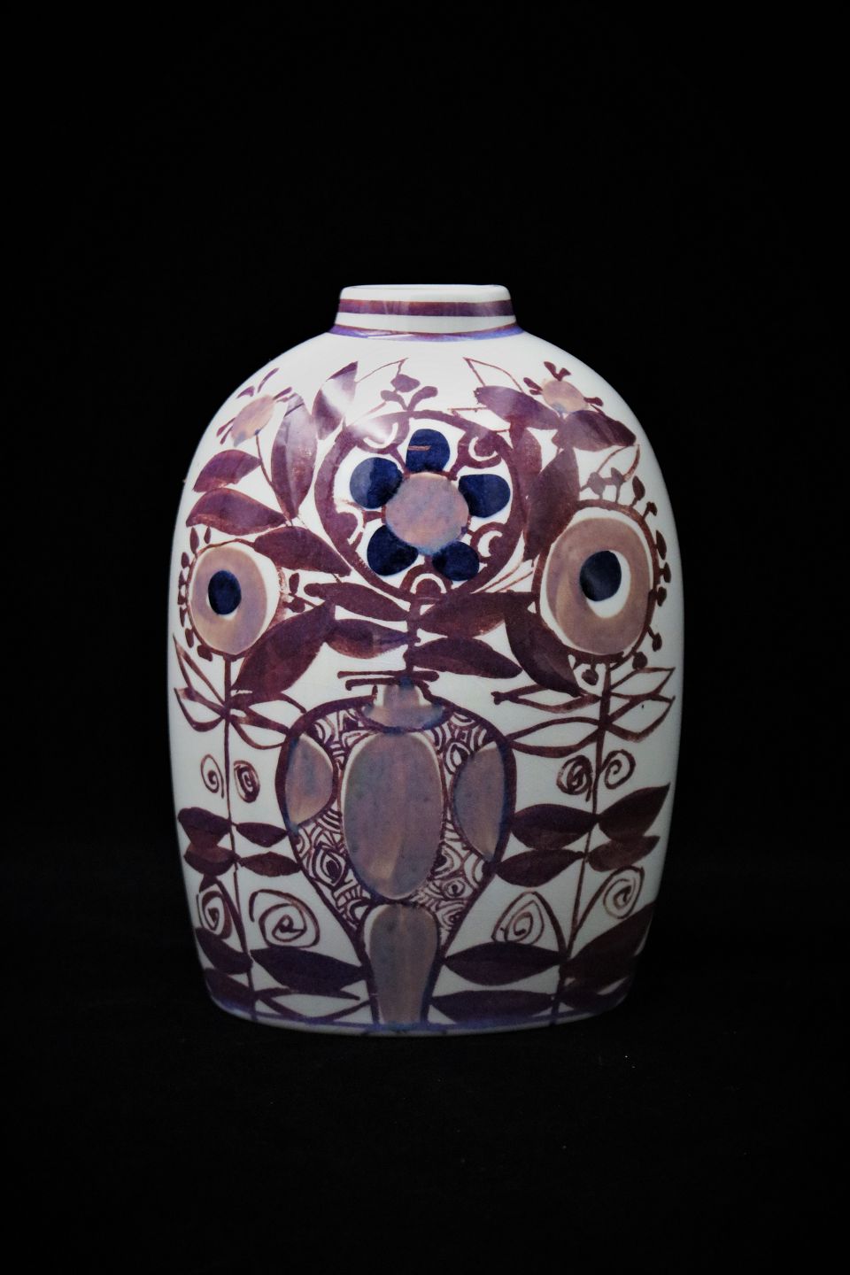 Aluminia Fajance Tenera vase med blomster motiv i lilla farver.
