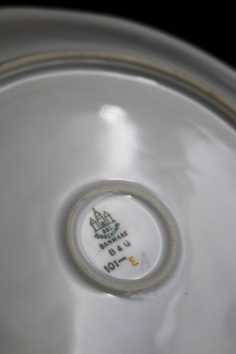 Bing & Grøndahl kagefad med håndtag og guld dekoration i mågestellet. B&G#101...