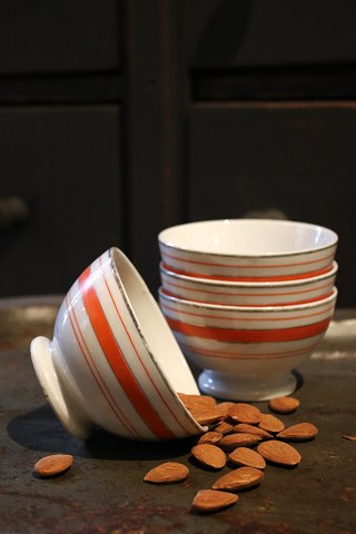 Old French cafe latte bowl / bowl with motifs of various vegetables in earthenware and with a fine patina.